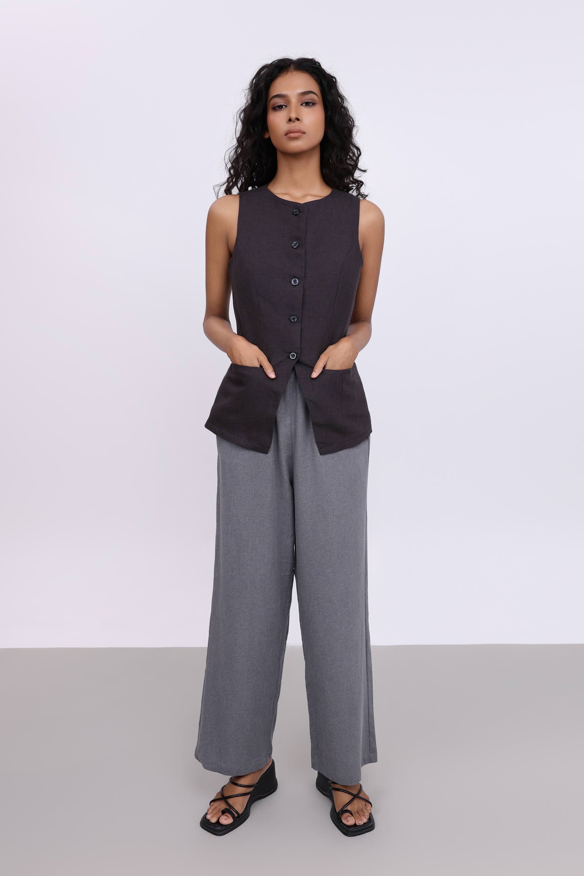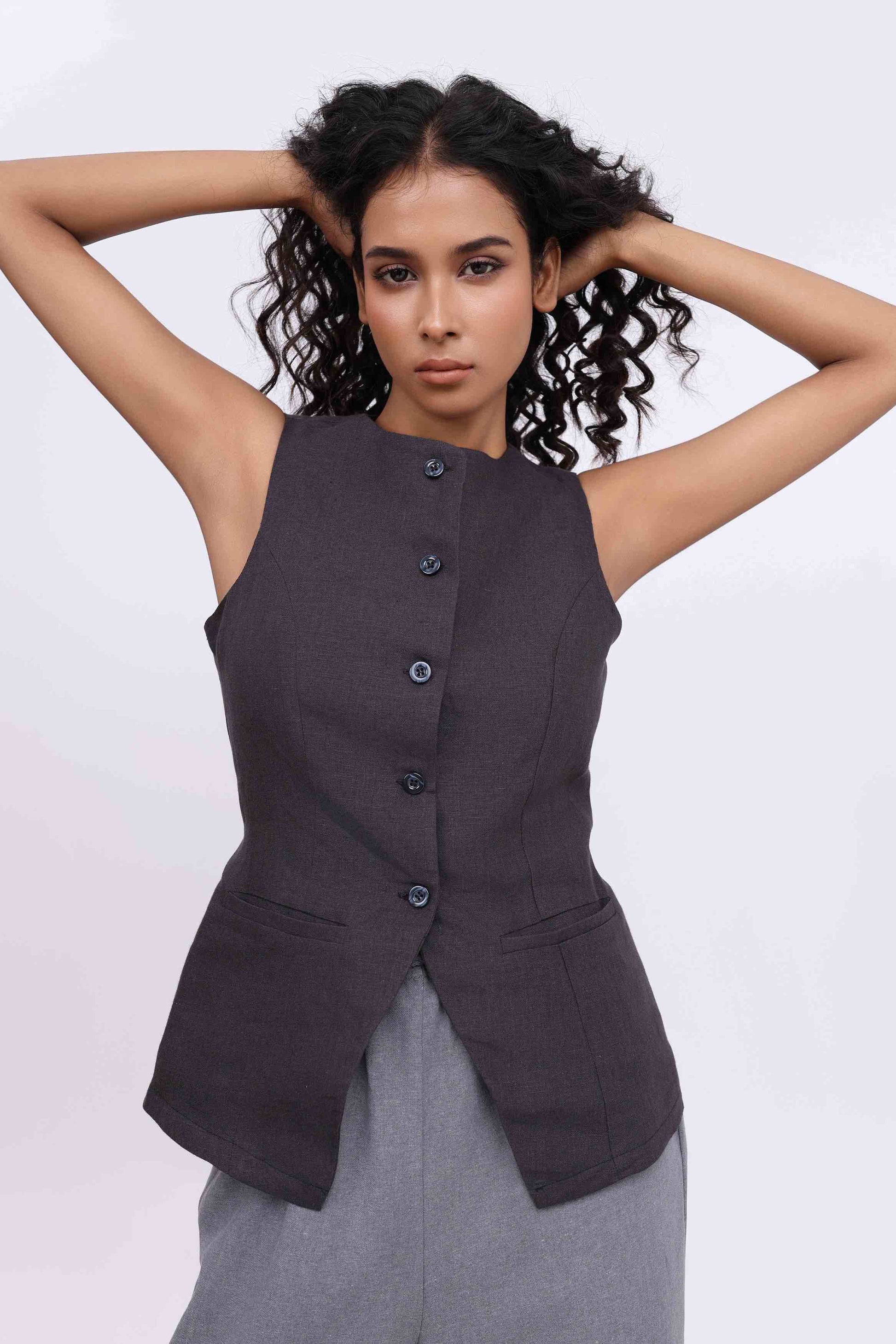 TIA BLACK LINEN VEST